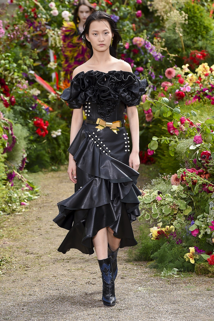 Rodarte kardeşler tuhaf hayal güçlerini bu koleksiyonlarına yansıtmışlar desem yanlış olmaz sanırım? Asimetrik kesimli etekler, incilerle süslenmiş deri parçalar, farklı motif ve dantellerle yaratılmış transparan elbiseler koleksiyonda çokça yer almış. Bu defilede en çok dikkatimi çeken; elinde bir buket çiçekle yürüse de Rodarte kadınının sert duruşu oldu. Koleksiyonda siyah ve beyazın yanında pastel renkler ve romantik dokularda yer alıyor.