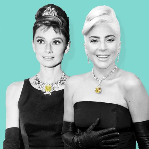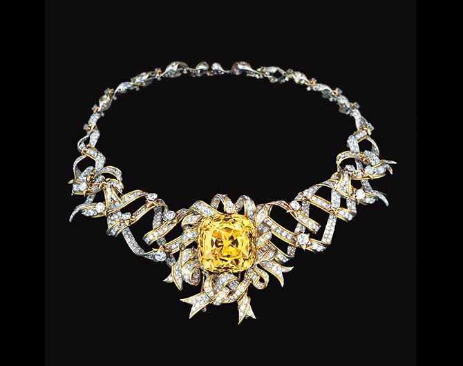 1961’de Audrey Hepburn tarafından The Breakfast at Tiffany’s (Tiffany’de Kahvaltı) filminin tanıtım çekimlerinde, Jean Schlumberger tasarımı “Ribbon Rosette” kolyesine yerleştirildi Tiffany Diamond.