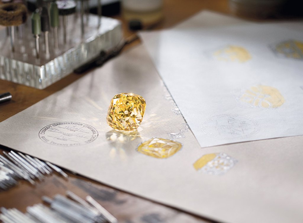 Alınan bu kaba taş, Tiffany’nin baş gemoloğu Dr. George Federick Kunz’un benzeri görülmemiş bir kesim yapması için Paris’e getirildi. Boyuttan ziyade ışıltısını ve rengini açığa çıkartmak için kesilen elmas; içinden bir ışık yansıyormuş gibi, sanki aydınlatılmış gibi parlıyor!