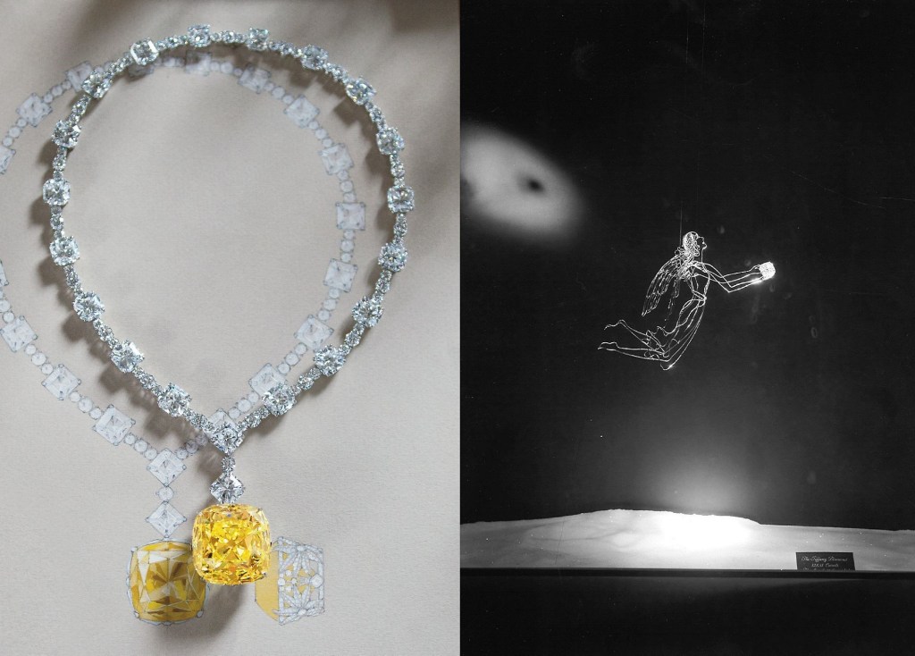 Tiffany’nin ünlü Beşinci Cadde (Fifth Avenue) mağazasının özel vitrin çalışmalarından birinde elmas, vitrin tasarımcısı Gene Moore tarafından tasarlanmış olan, altın tellerden yapılmış bir meleğin ellerine yerleştirildi.