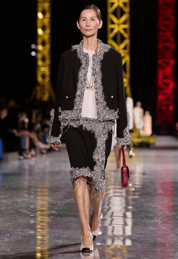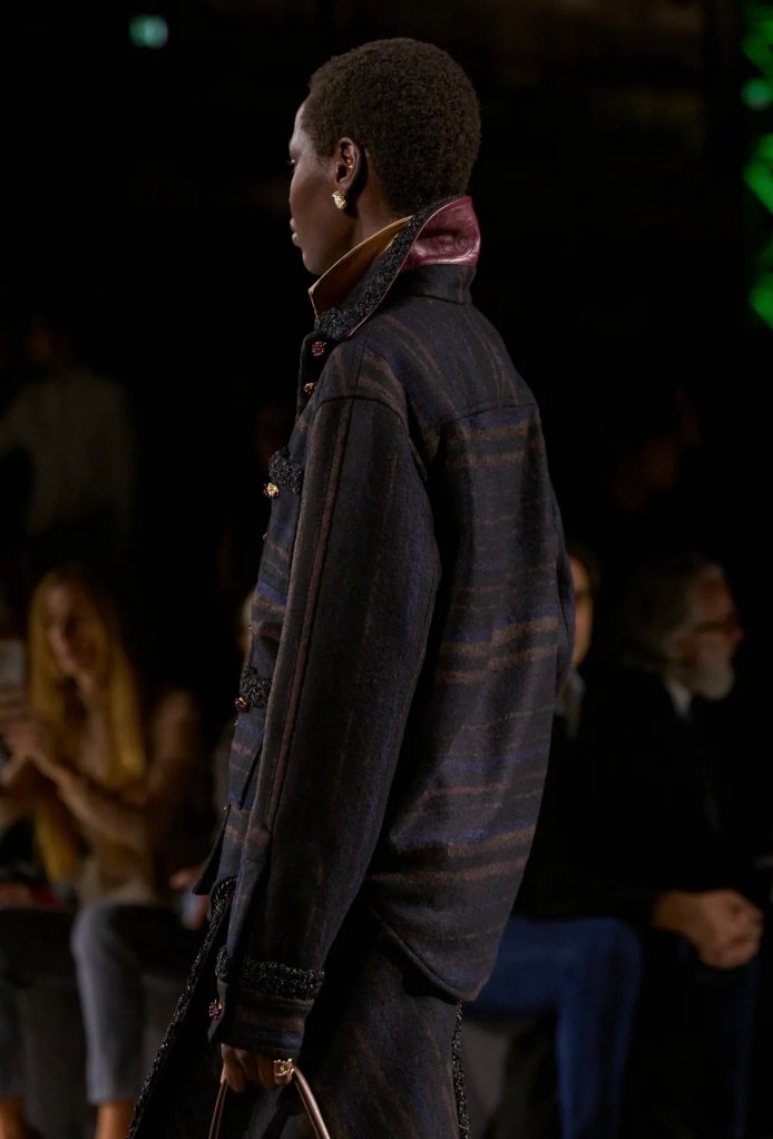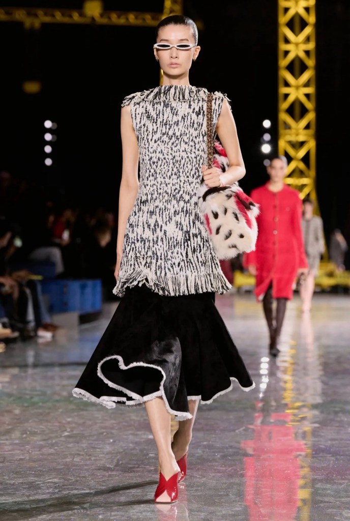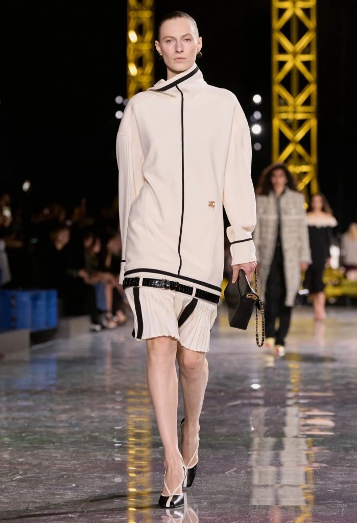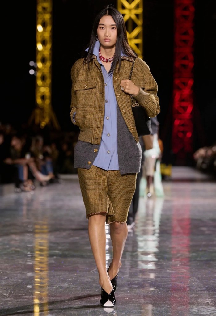 - Gevşetilmiş Tweed: O bildiğimiz klasik, kuralcı Chanel ceketleri gitmiş; yerine fitilli trikolarla desteklenen, altın düğmeler yerine ara ara fermuarların kullanıldığı ve lureks iplerle boyut kazanan çok daha rahat “bluzon” ceketler ve iş gömlekleri gelmiş.
