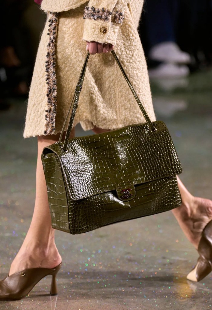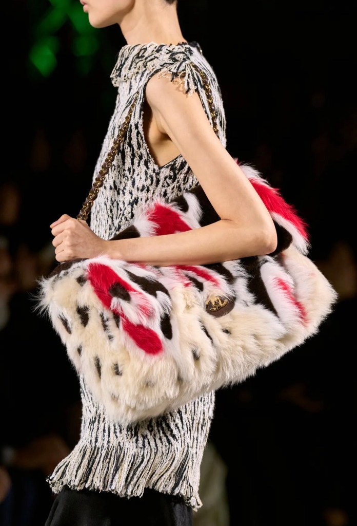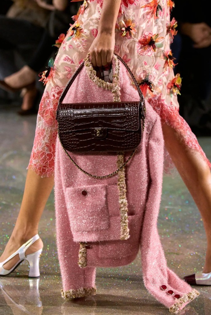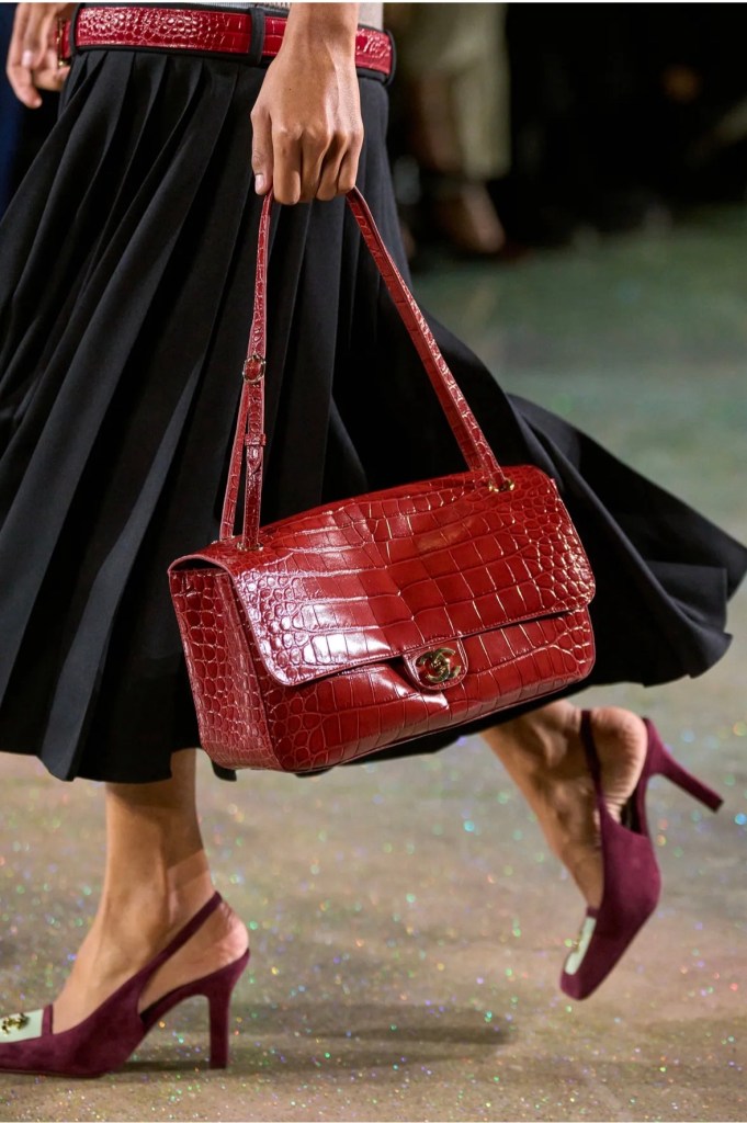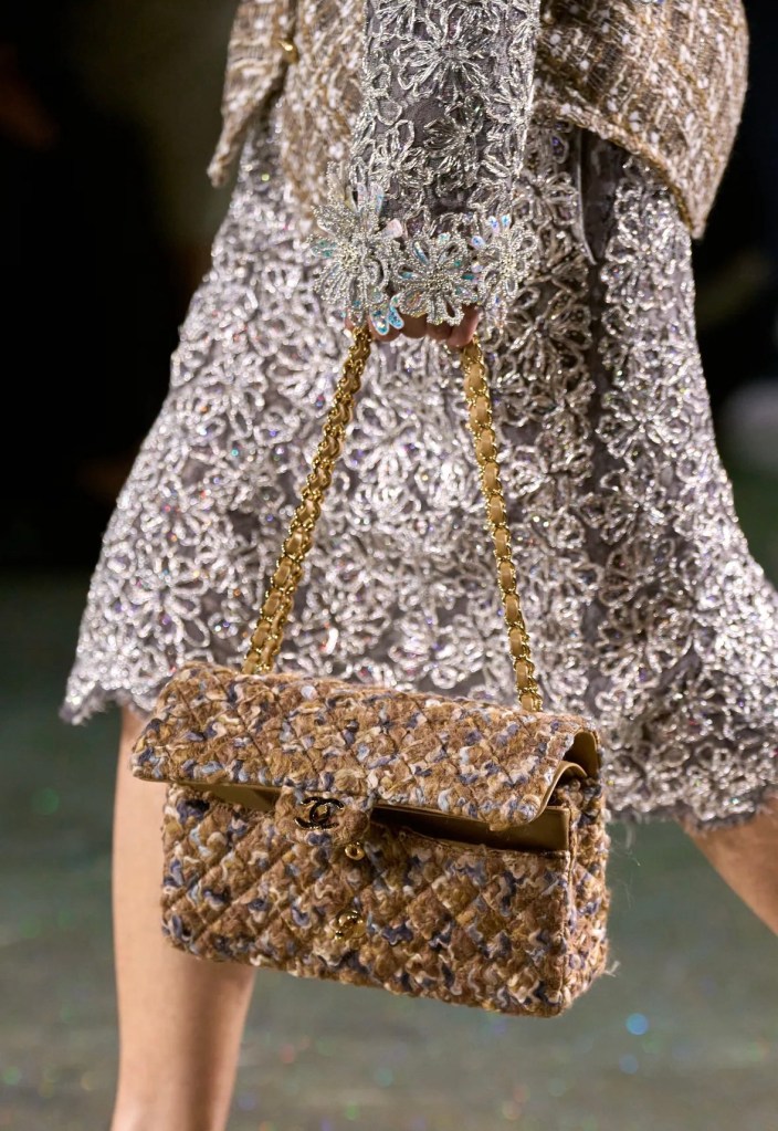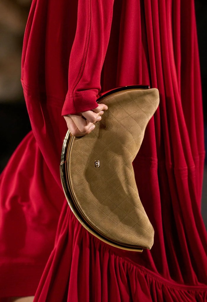 Çantalar: Gabrielle Chanel’in dairesindeki matelassé koltukları anımsatan dokulu süet flap çantalar, üst üste binen “iki çanta bir arada” illüzyonları ve şovun en konuşulan detayı olan nar formundaki minik minaudière’ler.