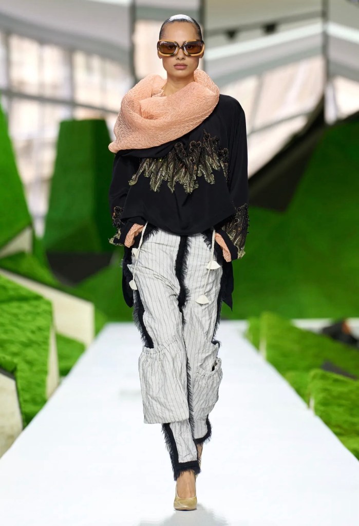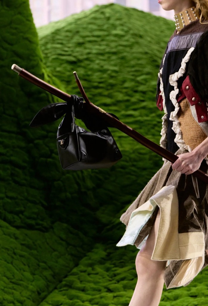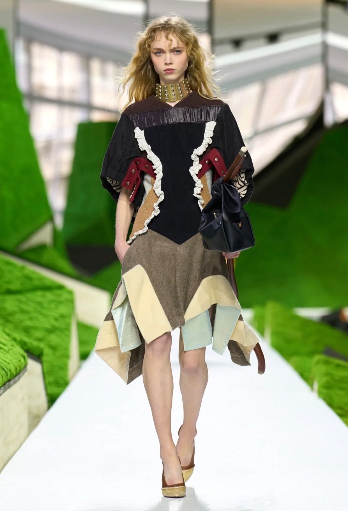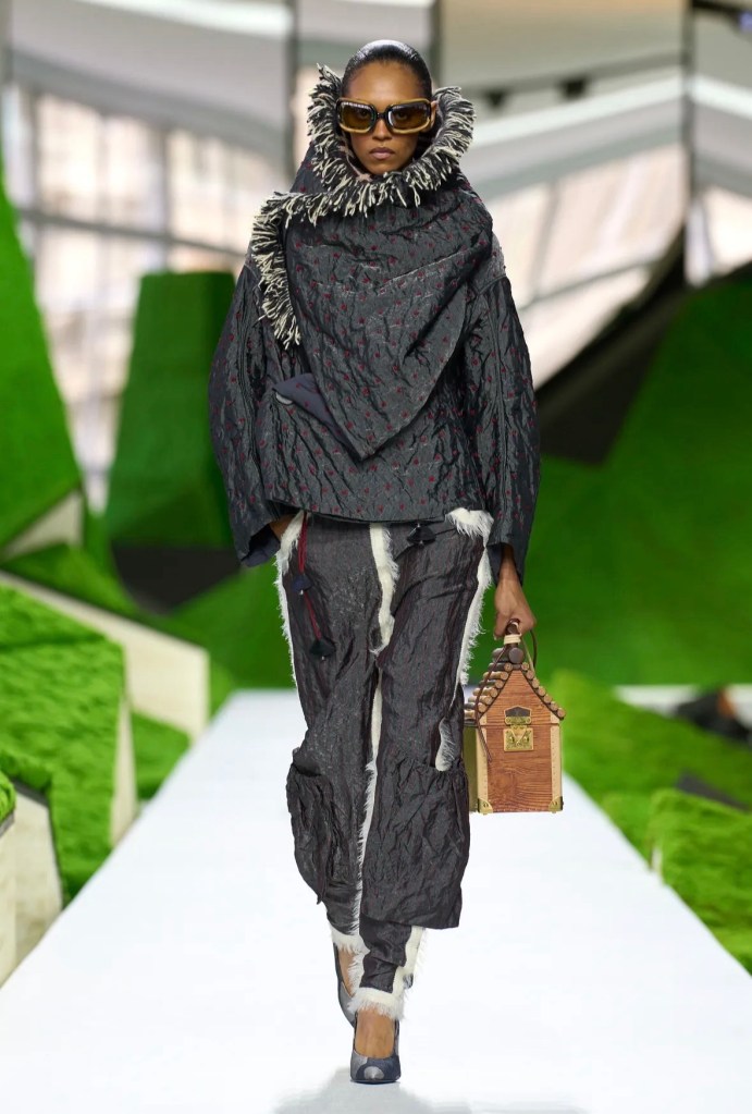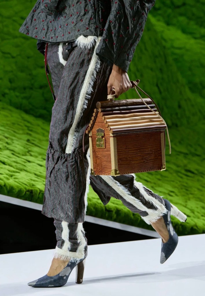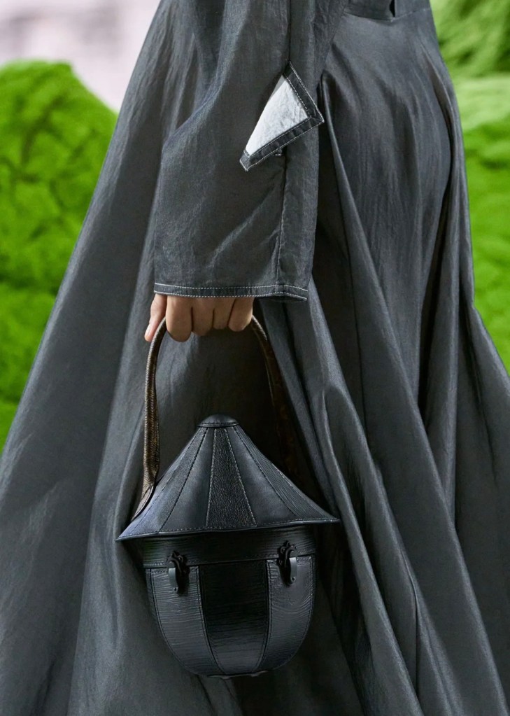 Koleksiyonda hacimli pelerinler, deri üzerine kusursuzca işlenmiş ahşap yivleri ve floral motifler (“hyper-craft” dedikleri o üstün zanaat) büyüleyiciydi. Ancak detaylara indikçe beni asıl heyecanlandıran şey, aksesuarların sınırları zorlayan dönüşümü oldu. Podyumda çantalarla donatılmış yürüme bastonlarını, 1932’deki orijinal oranlarına dönen ikonik Noé çantasını ve Man Ray fayda (utility) çantasının adeta bir mücevher setine dönüştürüldüğünü gördük. Bir nesnenin alıştığımız formundan çıkıp yepyeni bir işlev kazanması, tasarımın en saf ve heyecan verici hali değil mi?