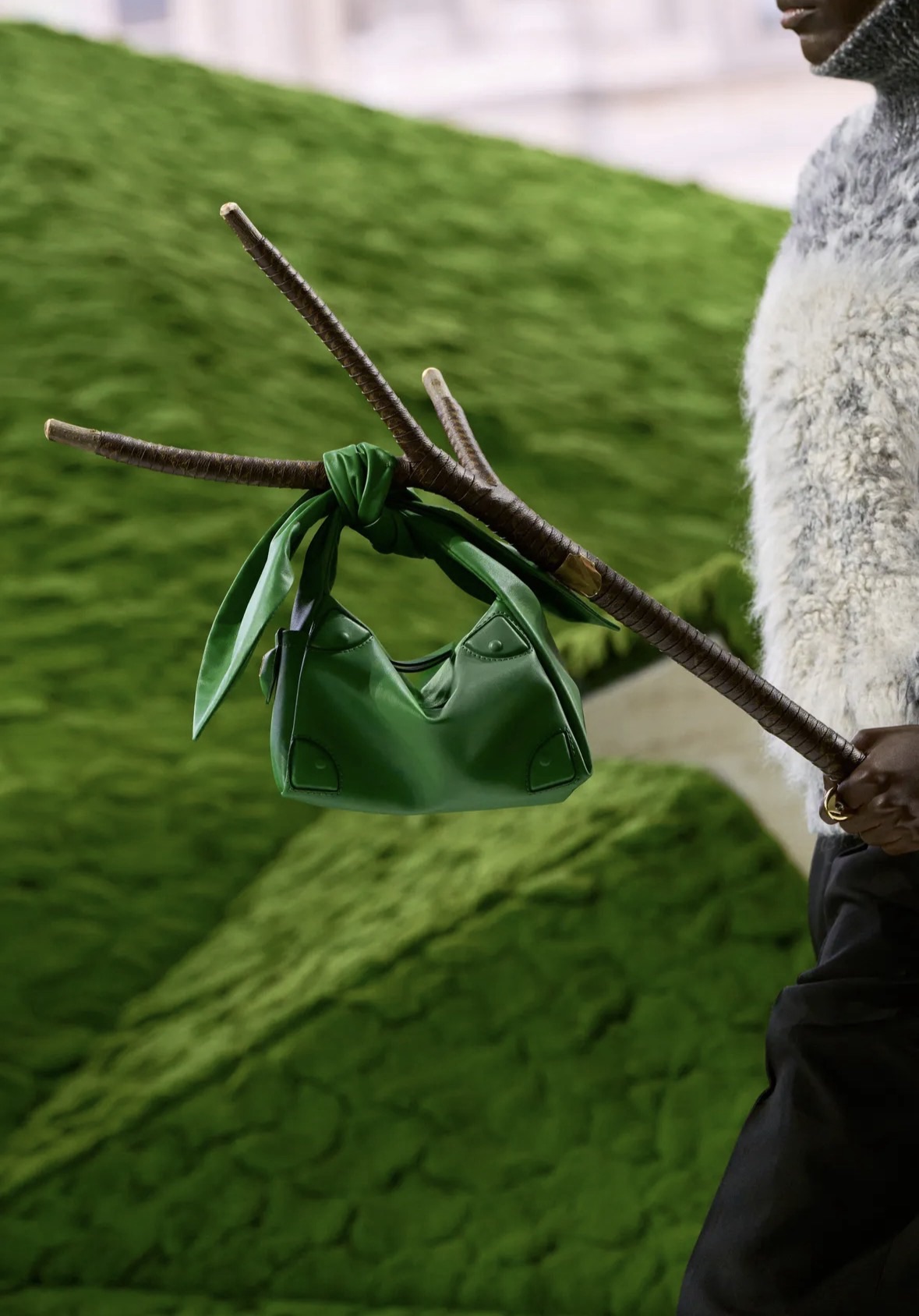 Koleksiyonda hacimli pelerinler, deri üzerine kusursuzca işlenmiş ahşap yivleri ve floral motifler (“hyper-craft” dedikleri o üstün zanaat) büyüleyiciydi. Ancak detaylara indikçe beni asıl heyecanlandıran şey, aksesuarların sınırları zorlayan dönüşümü oldu. Podyumda çantalarla donatılmış yürüme bastonlarını, 1932’deki orijinal oranlarına dönen ikonik Noé çantasını ve Man Ray fayda (utility) çantasının adeta bir mücevher setine dönüştürüldüğünü gördük. Bir nesnenin alıştığımız formundan çıkıp yepyeni bir işlev kazanması, tasarımın en saf ve heyecan verici hali değil mi?