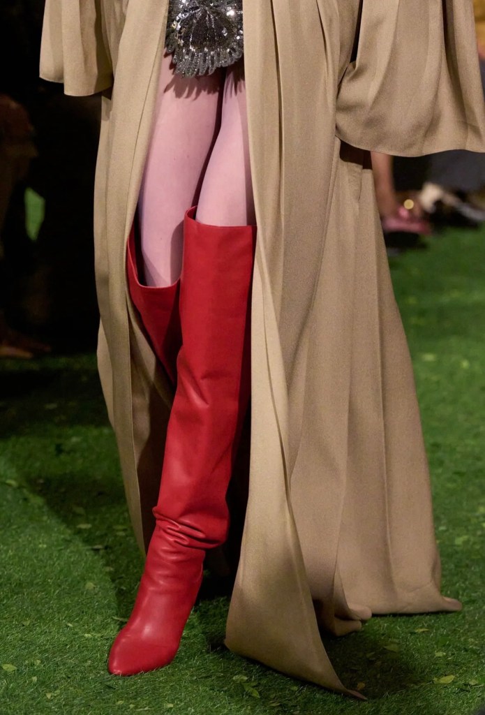 - Silüetler ve Dokular: 1980’lerin görkemi, modern ve asi dokunuşlarla yeniden yorumlanmıştı. Şeffaf dantel pantolonların keskin hatlı, özel dikim ceketlerle kombinlenmesi veya maskülen çizgilerin şifon detaylarla buluşması, koleksiyonun temelindeki “zıtlık” temasını vurguluyordu.